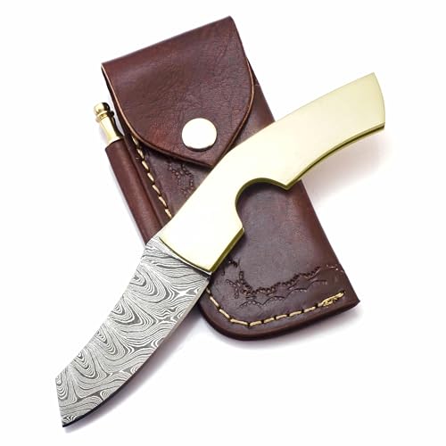 AR Knife Handmade Damascus Steel Cigar Cutter Knife (Brass)